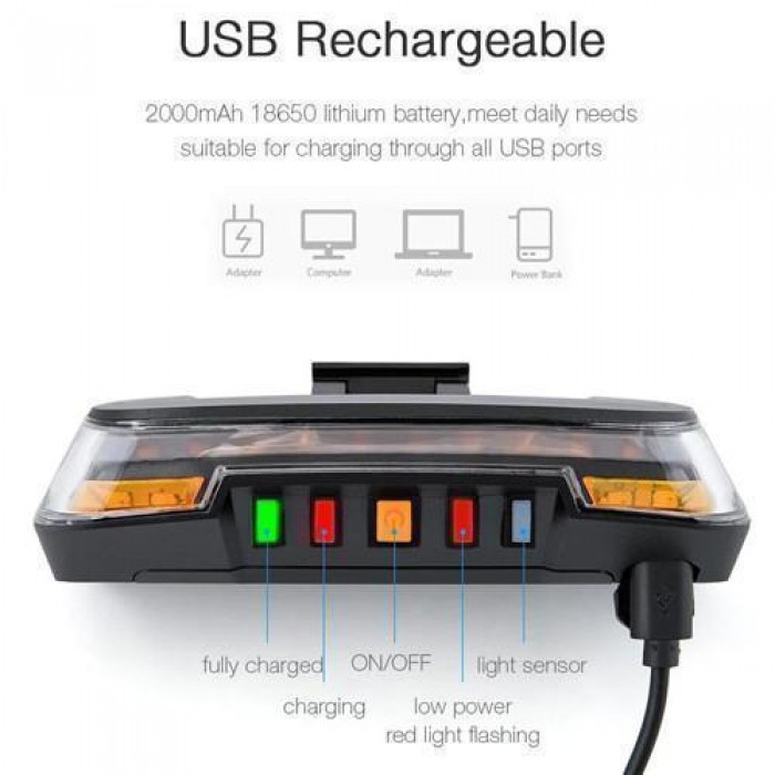 Комплектація: ліхтар, велокріплення, кабель USB-Type-C, пульт керування