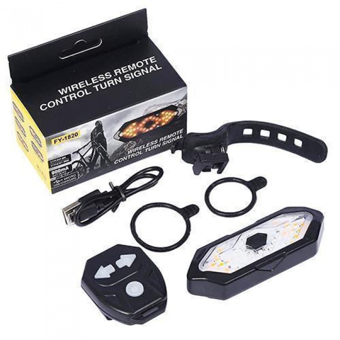 Комплектація: велоліхтар, пульт управління, кріплення, кабель USB-microUSB