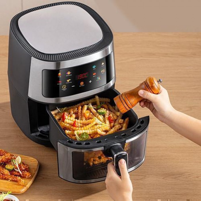 Аерогриль електричний 608D для кухні, сенсорна аерофритюрниця для картоплі фрі та м'яса 8 л 2400 Вт.