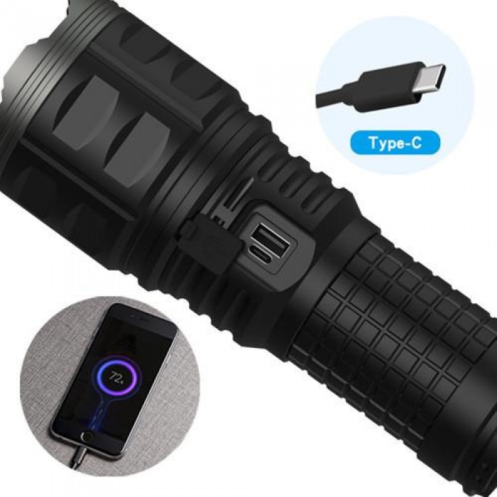 Комплектація: ліхтар, кабель для заряджання USB-Type-C, 4х18650 акумулятора
