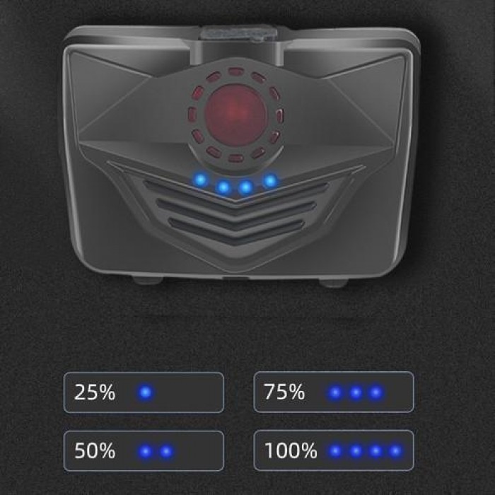 Додаткові характеристики: індикація заряду, регульований кут нахилу голови ліхтаря
