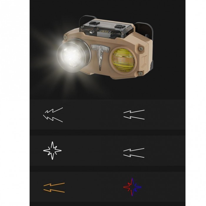 Кількість режимів роботи: 6 (100% white 33P35, 75% white 3P35, стробоскоп white 3P35, 100% yellow COB, 100% white COB, стробоскоп RGB)