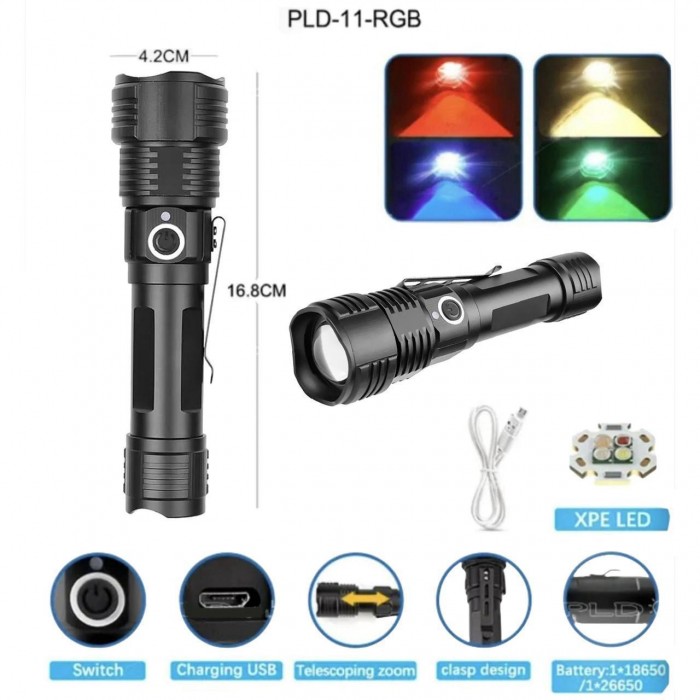 Комплектація: ліхтар, 1 акумулятор 18650, кабель для заряджання USB-microUSB