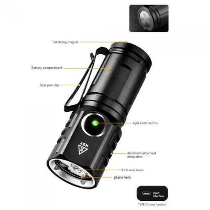 Комплектація: ліхтар, кабель для заряджання USB-Type-C, 1х18350 акумулятор