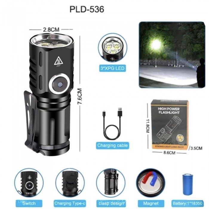| Комплектация, | фонарь, кабель для зарядки USB-Type-C, 1х18350 аккумулятор |