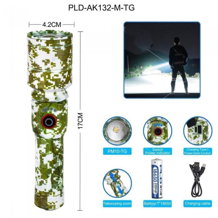 | Комплектация, | фонарь, 1 аккумулятор 18650, кабель для зарядки USB-Type-C |