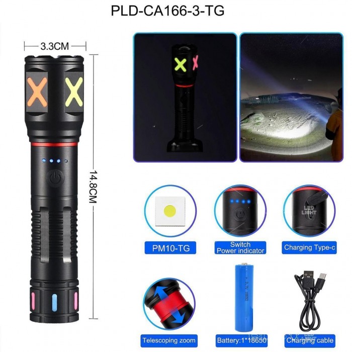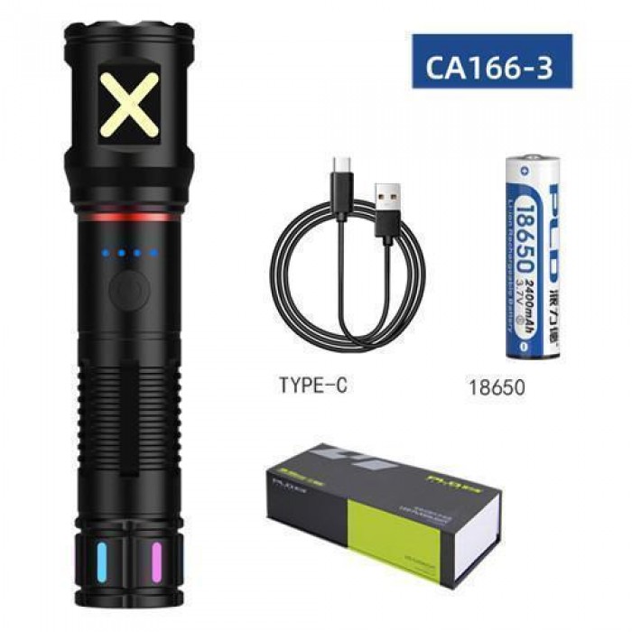 | Комплектация, | фонарь, 1 аккумулятор 18650, кабель для зарядки USB-Type-C |