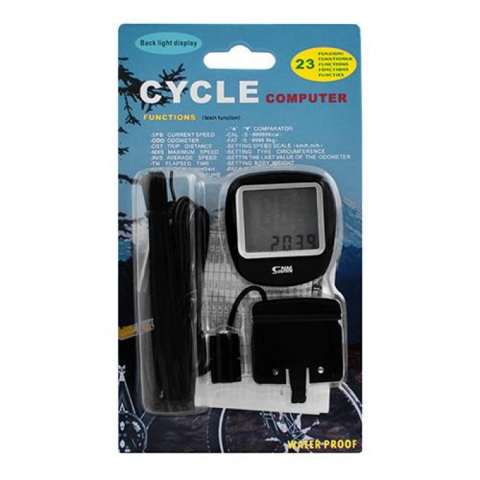 Додаткові характеристики : Вологозахищений корпус з підсвічуванням (працює з 18.00 до 7.00). 19 функцій: швидкість, середня швидкість, максимальна швидкість, час у дорозі, відстань, одометр, налаштування довжини коліс, автостарт/стоп, керування стартом/стопом, перемикання км/милі, автоочищення екрану, перемикання формату часу, SCAN () , порівняч показників , рахунок калорій/кілогра мм, останні показання одометра, вибір ваги тіла, утримання пам'яті, сигнал для обслуговування.