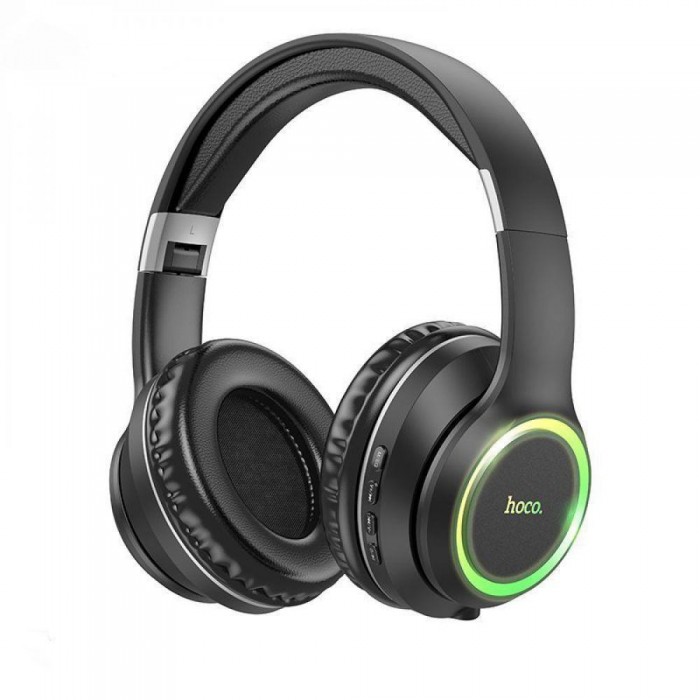 Блютуз стерео гарнітура Hoco ESD14 - це сучасні повнорозмірні навушники, які вирізняються широким функціоналом та відтворенням деталізованого звуку з потужними басами та чистими високими частотами. Завдяки надзвичайно невеликій вазі та ергономічному, стильному дизайну, дана модель стане чудовим вибором для використання протягом усього дня та підійде до будь-якого образу. Корпусні деталі пристрою якісно зібрані, мають приємну на дотик поверхню, виготовлені із міцного пластику. М'які амбушюри, обшиті зносостійким, приємним на дотик матеріалом, щільно прилягають до вух, не створюють навантаження і добре захищають від зовнішнього шуму. М'яка накладка оголов'я та практична складна конструкція гарнітури зроблять її повсякденну експлуатацію ще комфортнішою. Її привабливий зовнішній вигляд доповнений градієнтним підсвічуванням вушних елементів, що створює чарівний візуальний ефект. Модель оснащена зручно розташованими кнопками управління, мікрофоном, вбудованим акумулятором ємністю 200mAh і роз'ємом Type-C для заряджання, слотом для картки пам'яті, підтримує дротове та бездротове підключення до джерела звуку через модуль Bluetooth V5.3 та стандартний роз'єм Type-C. Час її безперервної роботи в режимі відтворення або розмови складе близько 4 годин, а час заряджання не триватиме більше 1 години. Навушники комплектуються кабелями AUX та Type-C.