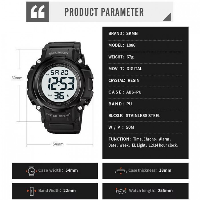 Часы наручные 1886BKWT SKMEI, BLACK-WHITE