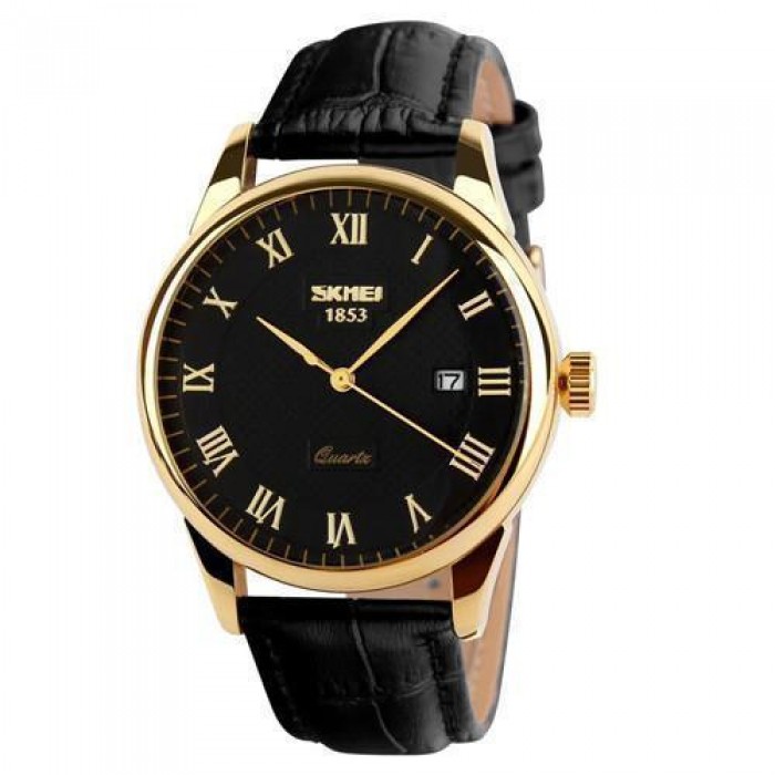 Годинники наручні 9058LGDBKBK-B SKMEI, GOLD CASE BLACK BAND BLACK DAIL (MEN)