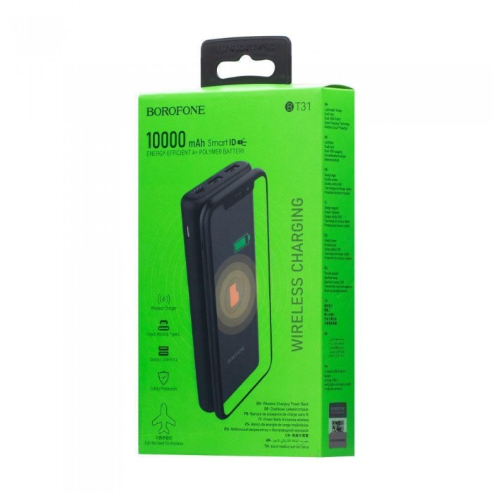 Power Bank Borofone BT31 Wireless 10000 mAh може використовуватися для підзарядки різних мобільних пристроїв: смартфонів, планшетів, плеєрів. Ємність батареї становить 10000 mah. Світлодіодний індикатор повер банку допоможе контролювати рівень живлення. Корпус виготовлений з якісних матеріалів і привабливими дизайнерськими особливостями. У пристрої розташовані два універсальних порта usb. У комплект входить кабель Micro-usb. Функціональні можливості моделей Borofone відповідають заявленим характеристикам.