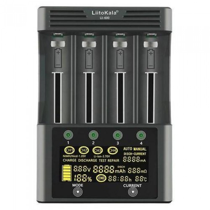 1. Вхід змінного струму 110-240 В 50/60 Гц (стандартний вбудований блок живлення), незалежна зарядка з чотирма роз'ємами та мікрокомп'ютерною системою управління.