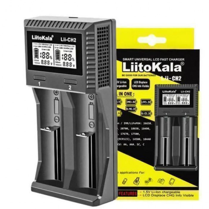 Зарядний пристрій LiitoKala Lii-CH2, 2x26650 /21700 /20700 /18650 /18490 /18350 /17670 /175000 /16340 /14500 /10440 / AA / AAA