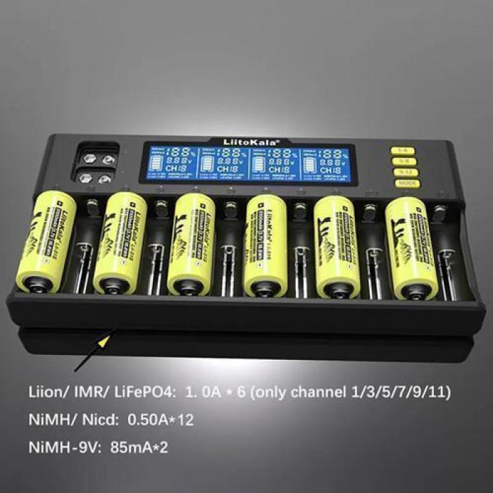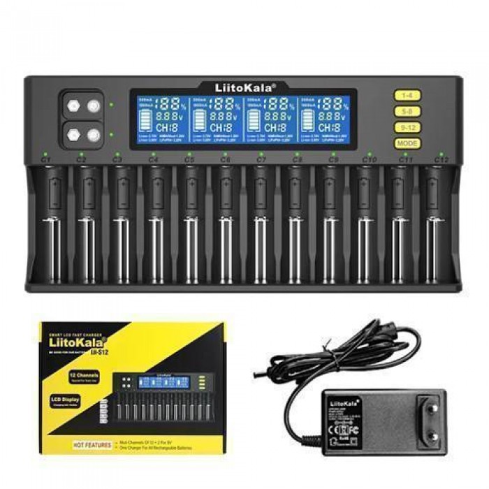 Зарядний пристрій LiitoKala Lii-S12, 12x26700/ 26650/ 2170/0 18650/ AA/ 9V