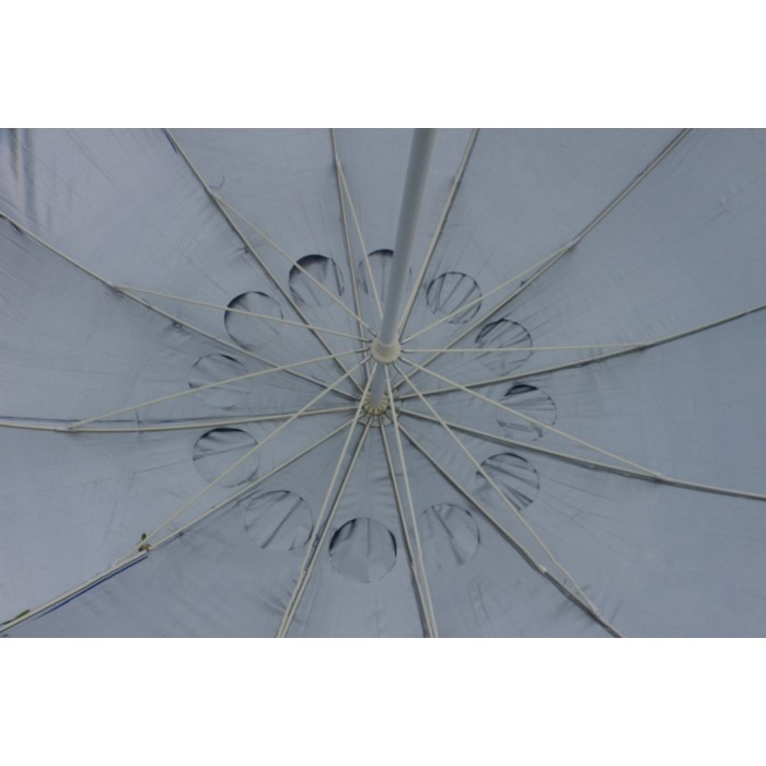 Стойка и спицы изготовлены из стали, покрытые краской. Материал купола: полиэстер 100%. Ткань не нуждается в специальном уходе, быстро высыхает, устойчива к воздействию света, водостойкая и прочная. Благодаря наличию клапана для выхода восходящих потоков ветра - зонт имеет дополнительную устойчивость.