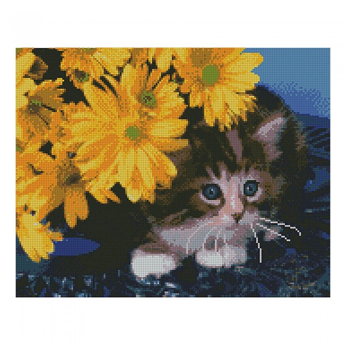 Купити Алмазная мозаика Strateg «Котенок в желтых цветах», 40х50 см недорого оптом і в роздріб з доставкою по всій Україні ви можете на нашому сайті оптом.od.ua.