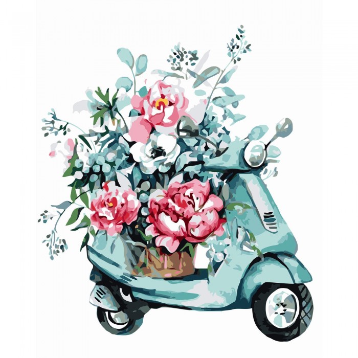 Купити Картина по номерам Скутер с цветами, 40х50 см(VA-0844) недорого оптом і в роздріб з доставкою по всій Україні ви можете на нашому сайті оптом.od.ua.