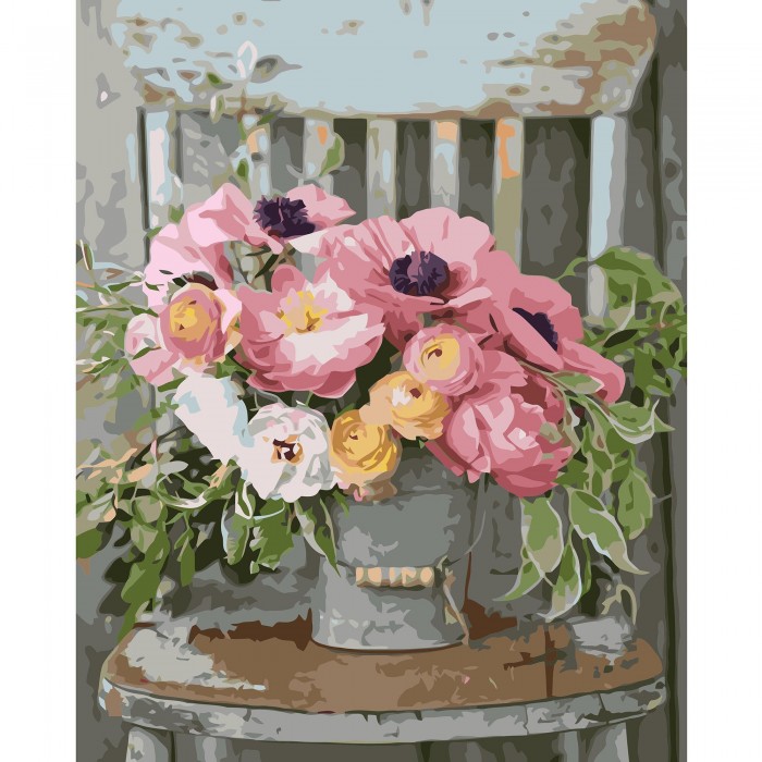 Купити Картина по номерам Strateg , Букет цветов на стульчике 40х50 см недорого оптом і в роздріб з доставкою по всій Україні ви можете на нашому сайті оптом.od.ua.