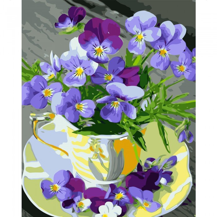 Купити Картина по номерам Strateg Чашечка с фиалками, 40х50 см недорого оптом і в роздріб з доставкою по всій Україні ви можете на нашому сайті оптом.od.ua.
