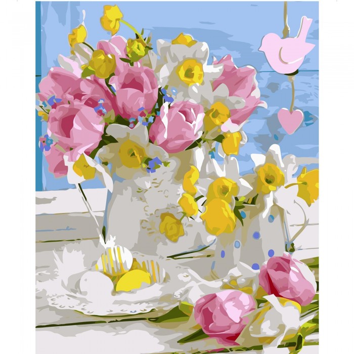 Купити Картина по номерам Strateg Розовые тюльпаны с нарциссами, 40х50 см недорого оптом і в роздріб з доставкою по всій Україні ви можете на нашому сайті оптом.od.ua.